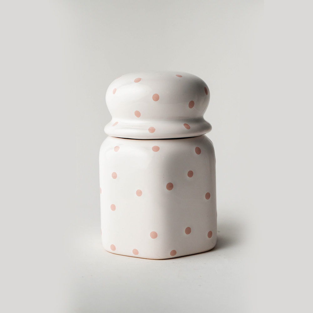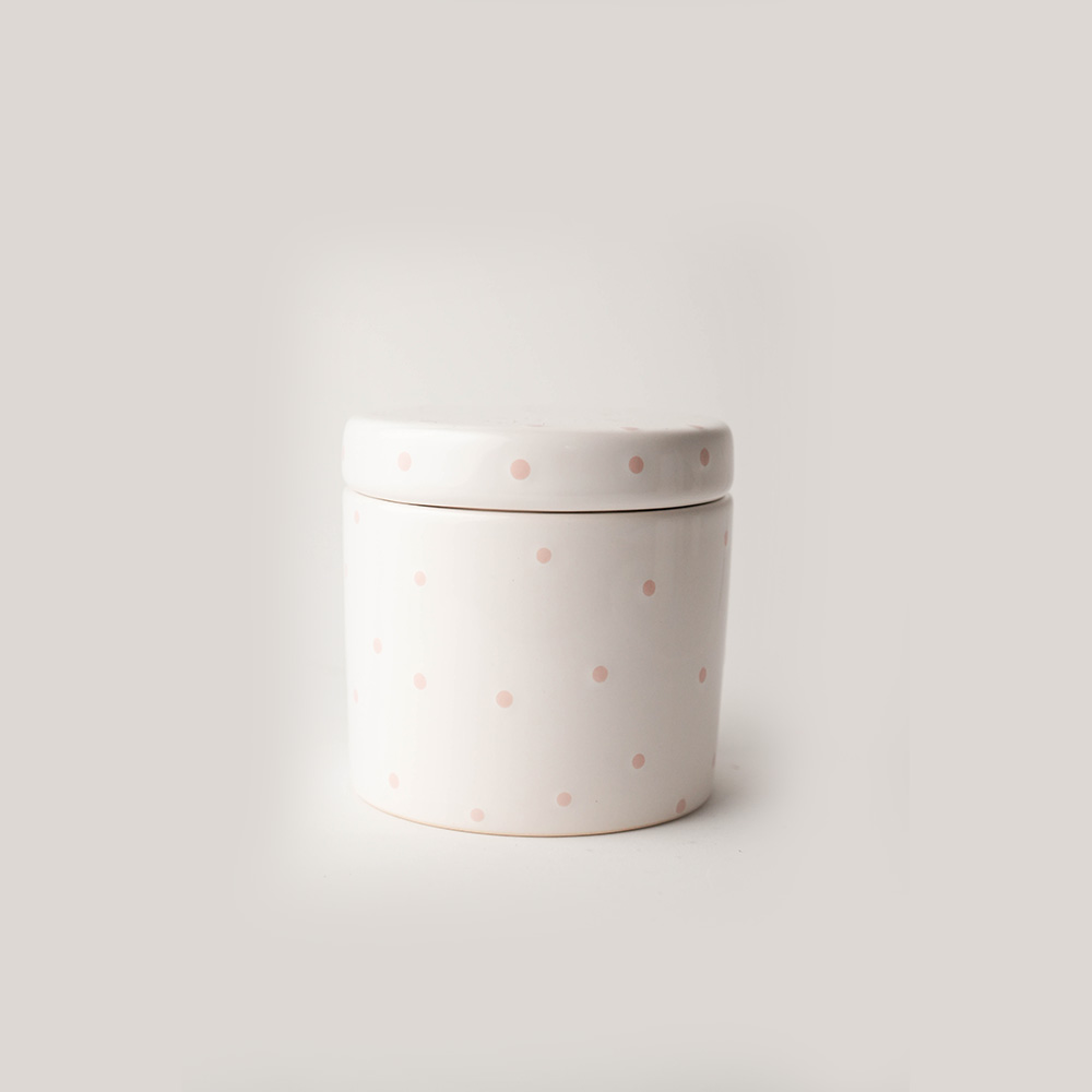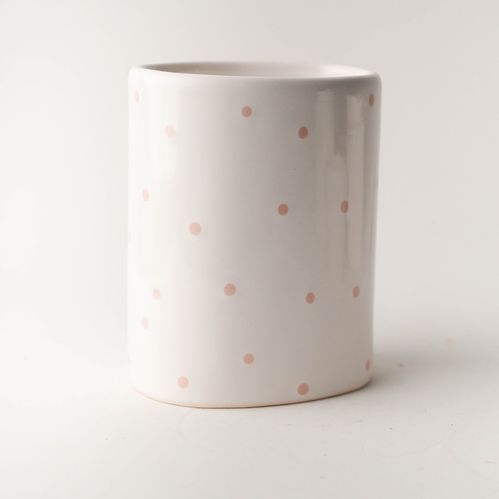 As bolinhas rosas podem desbotar? Não, a pigmentação é vitrificada na cerâmica, mantendo a cor viva e o brilho por toda a vida útil do produto.